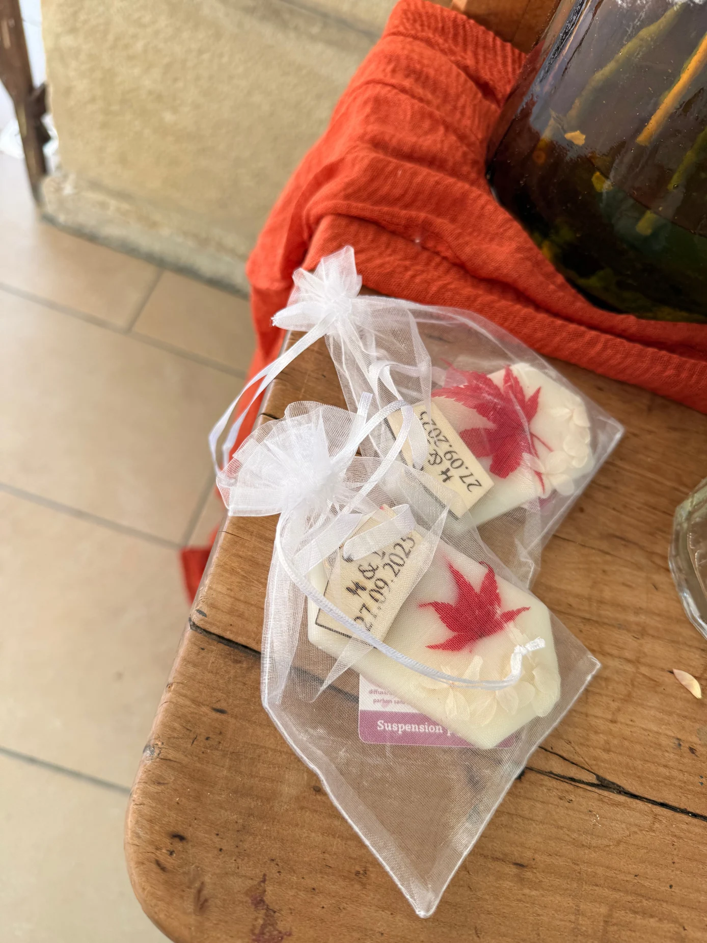 Vous souhaitez offrir un souvenir unique et personnalisé à vos invités ? Que ce soit pour un mariage, un baptême, un anniversaire ou toute autre fête de famille, nous créons pour vous des bougies et suspensions parfumées entièrement sur mesure.